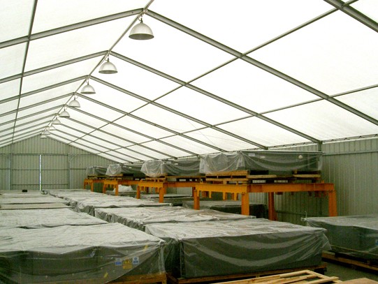 而倉儲篷房作為臨時性建筑。節約時間成本,快速實現倉庫擴建。倉儲篷房主體結構為鋁合金型材,輕便安全,建筑速度快,24小時可搭建起1000平方米左右的倉庫,縮短建筑工期,快速投入使用,及時解決淡旺季煩惱。